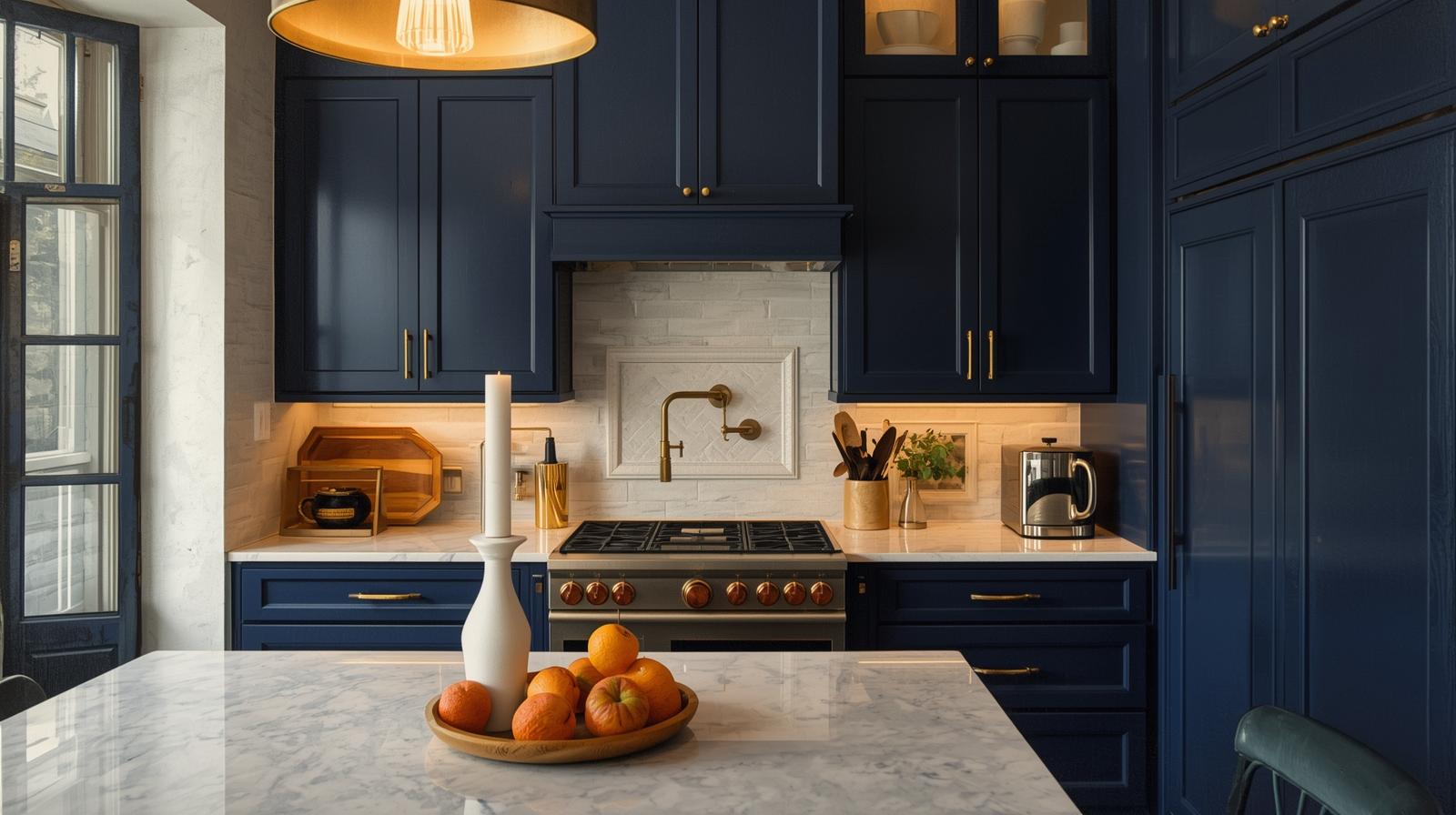 Navy and deep blue tones work beautifully across design styles from coastal and modern to classic and transitional. While blue can act as a neutral foundation, it also delivers impact, especially when paired with warm metallic hardware such as gold or brass.