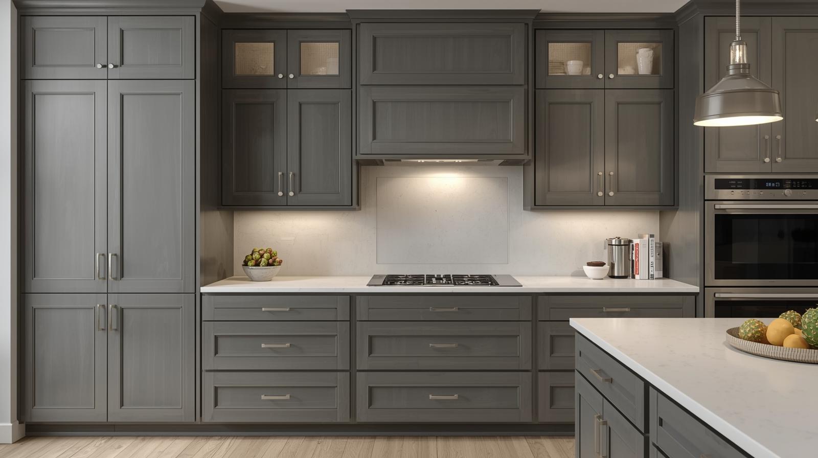 For a natural, textured look, our gray stained cabinets Storm, Slate, and Charcoal bring out the beauty of the wood while maintaining a modern aesthetic: